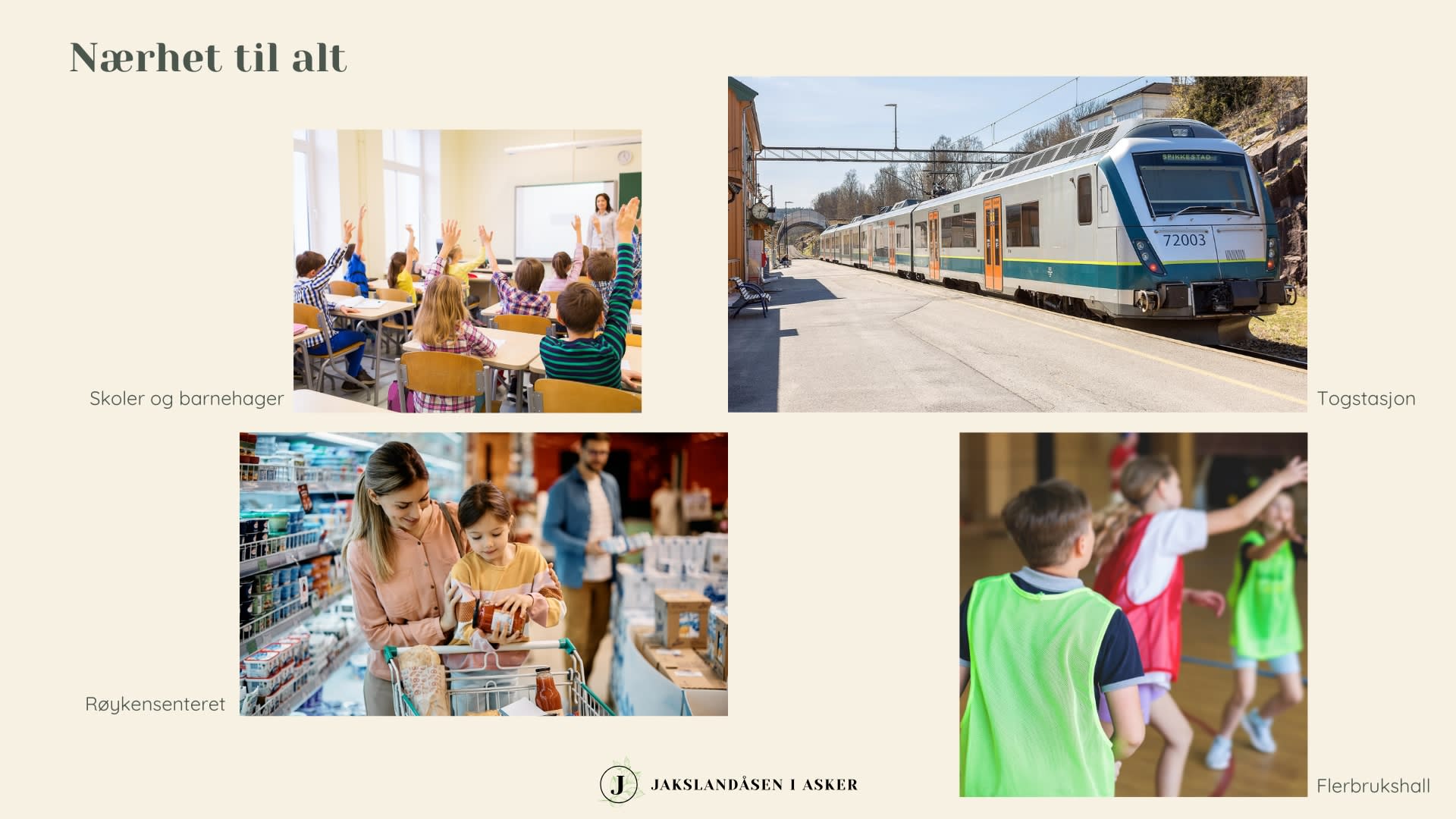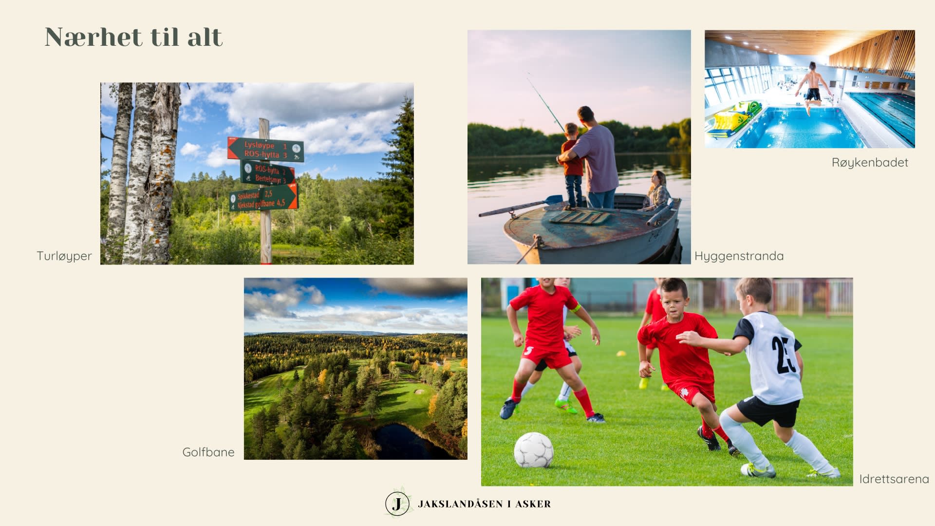 Røyken er et hyggelig tettsted i Asker kommune, et sted i sterk utvikling med høy tilflytning de siste årene. Her satses det stort på barn og unge, med et bredt spekter av fritidstilbud som Røykenbadet, Ros Arena og Røykenhallen – perfekt for aktive familier. I tillegg finner du skoler, barnehager og dagligvarebutikker like i nærheten, noe som gjør hverdagen enkel og effektiv. Med Røyken togstasjon innen kort avstand fra Jakslandåsen har du en rask og praktisk pendlervei til både Asker og Oslo, noe som gir deg det beste av to verdener – en rolig tilværelse hjemme og enkel tilgang til byens fasiliteter.