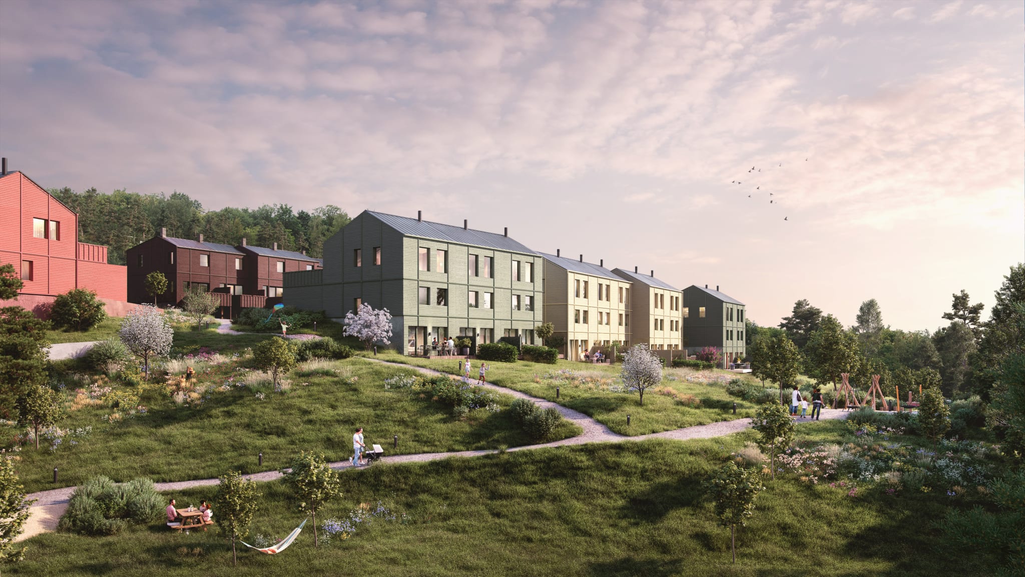 Første salgstrinn i Hagebyen består av 22 rekkehus(11 av 22 solgt). Her får du moderne rekkehus, alle med egen hage, balkong og smarte planløsninger. Perfekt for deg som drømmer om et hjem hvor barna kan løpe inn og ut hos venner, leke i skogen og boltre seg på de mange lekeplassene samtidig som du har alt du trenger i hverdagen innen korte avstander.