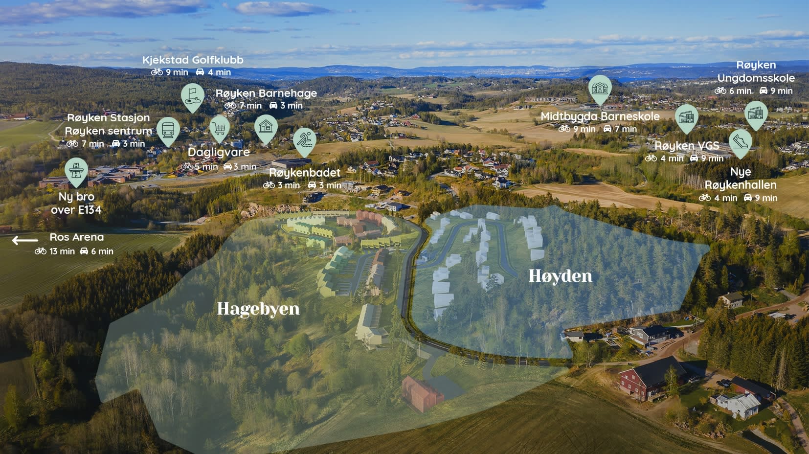 Fra Plommehagen er det kort vei til togstasjon, skoler, barnehager, kollektivtransport, butikker, treningssenter og mange aktivitetstilbud. Røyken er blitt et svært populært område og er i sterk vekst med en jevn befolkningsøkning de siste 10 årene.