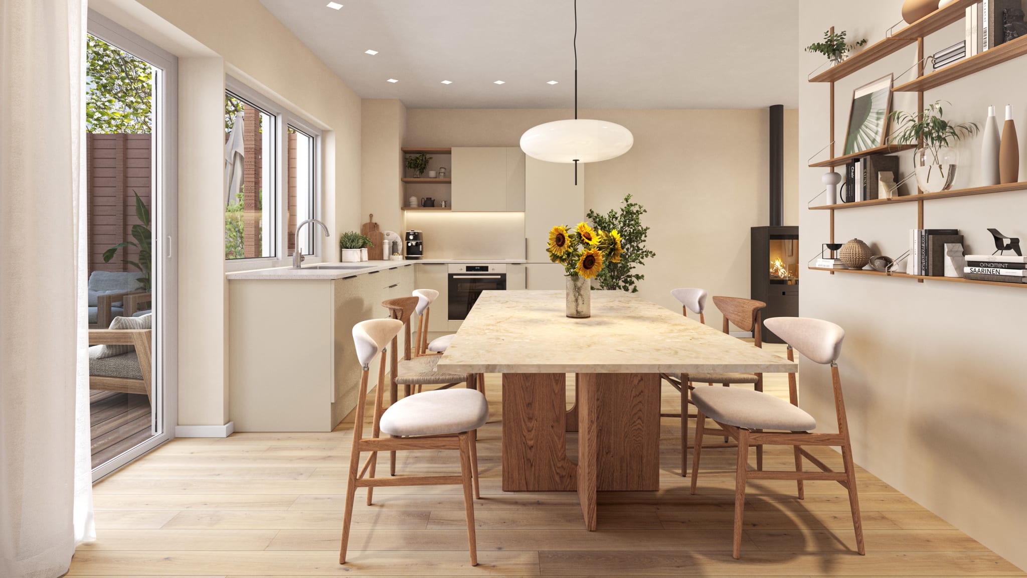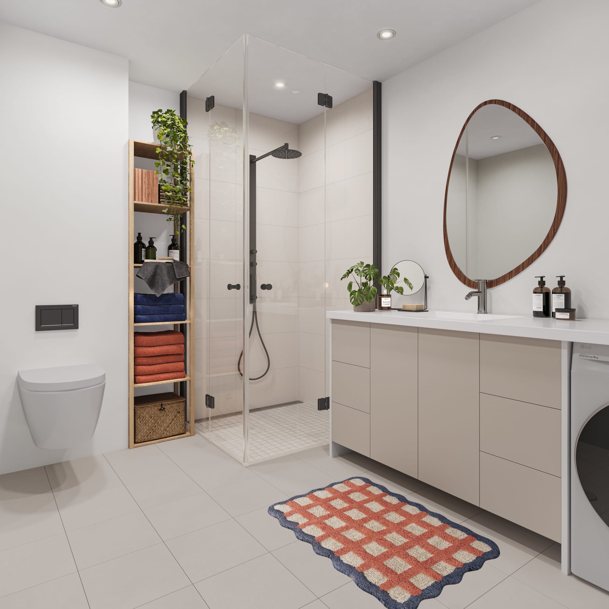 På innsiden av husene i Plommehagen har vi lagt vekt på løsninger som passer den moderne familien og materialer som varer lenge! Planløsningene er praktiske, med gode soverom, utgang til romslige uteområder fra kjøkken for en sømløs ute/inne følelse og god plass til oppbevaring! Innvendige vegger blir sparklet og malt for en moderne finish og på gulvene har du enstavs eikeparkett som varer livet ut. Kjøkkenet leveres fra kvalitetsleverandør.