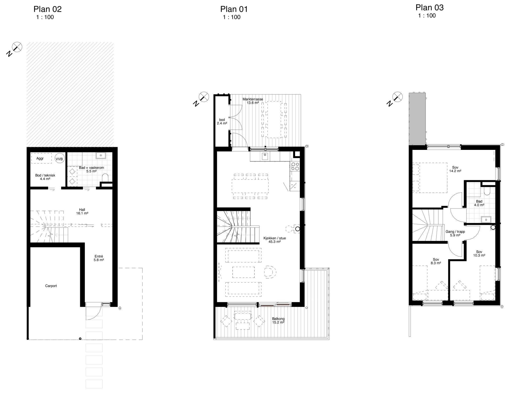 Husene i denne rekken er fra 121-123 kvm og strekker seg over tre etasjer, med alle soverom på samme plan, en stor stue og kjøkken etasje og en romslig hall/entre med flere møbleringsmuligheter! Muligheten er mange i dette huset!