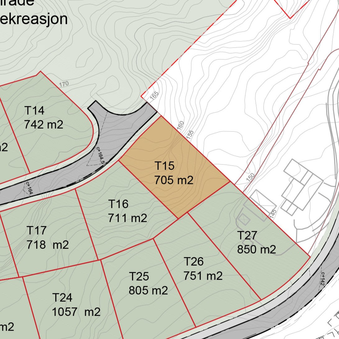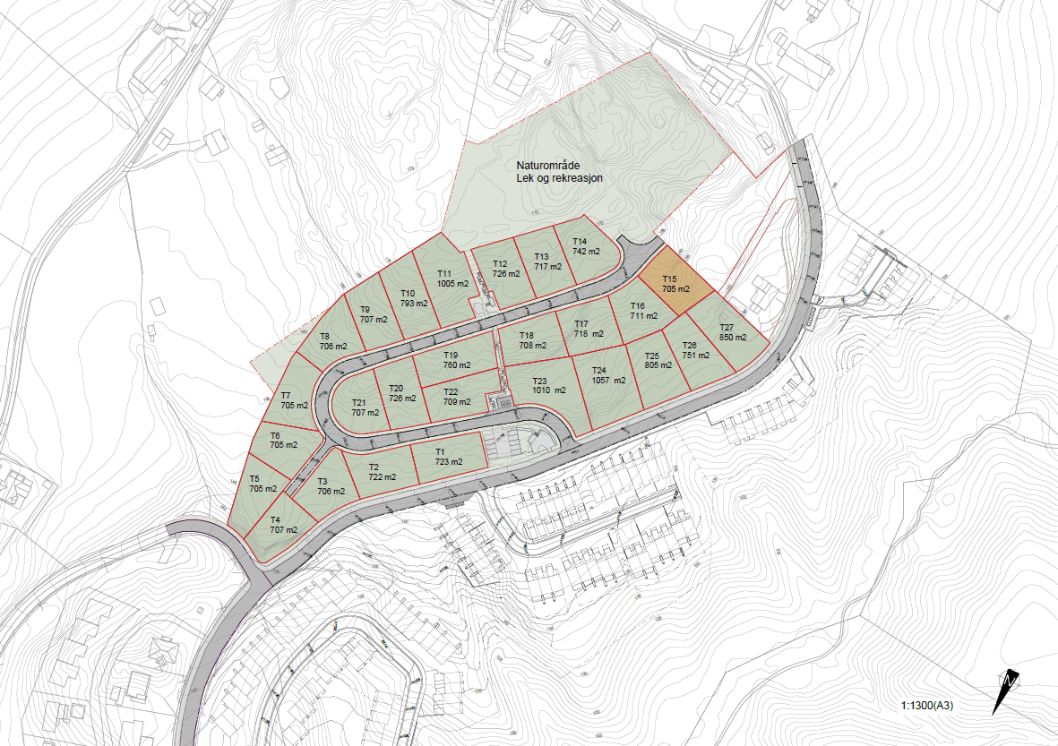Helt innerst i veien ligger denne flotte terrasserte tomten. Med innkjøring fra øst og fall mot vest kan du bygge drømmeboligen med fantastiske utsiktsforhold fra alle etasjer.