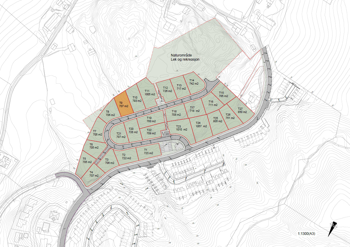 Dette er en terrassert tomt som ligger i skogkanten. Valget er ditt, men drømmer du om en helt privat takterrasse, er det lett å se for seg den flotte utsikten og de gode solforhold du ville få her.